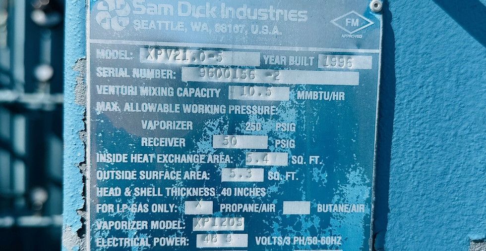 Skid assembly 1000-gallon tank with Algas XPV 21.0-5 vaporizer with LGL 1 1/2 pump w/3 HP motor